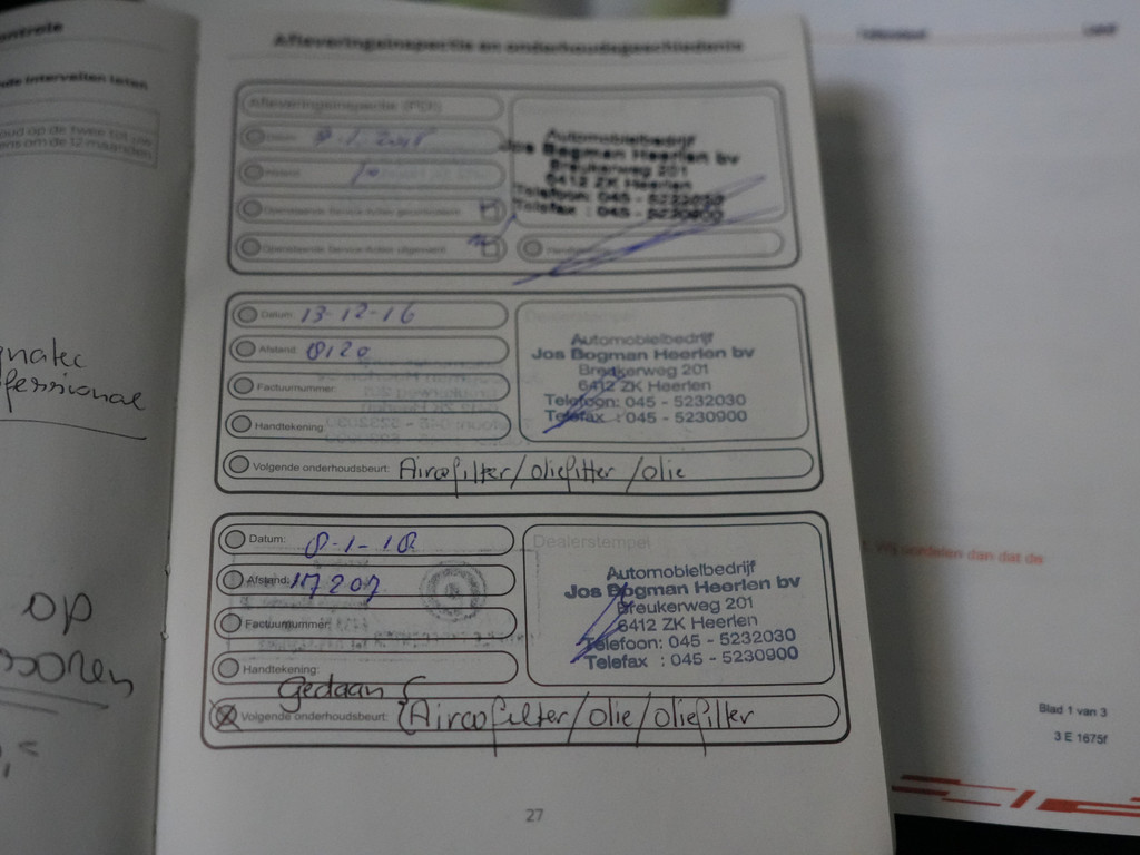 - Onderhoudsboekje aanwezig?